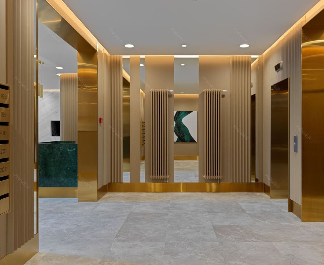 На полированной поверхности наносится диагональная шлифовка, придавая поверхности изысканный, утонченный вид, при этом оставляя возможность видеть отражение.