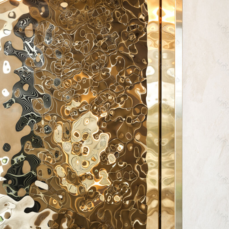 На полированной поверхности наносится фактура в форме кругов которые находят один на другой, придавая поверхности изысканный, утонченный вид, при этом оставляя возможность видеть отражение.